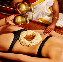 Pizichili is a  continuous stream of warm herbalized oil soothingly poured over the body by two  Ayurvedic therapists as they massage the body in perfect unison. The warmth of  the oil and synchronicity of the massage combine for a deep tissue cleansing  while supporting a heightened state of awareness that transcends description.